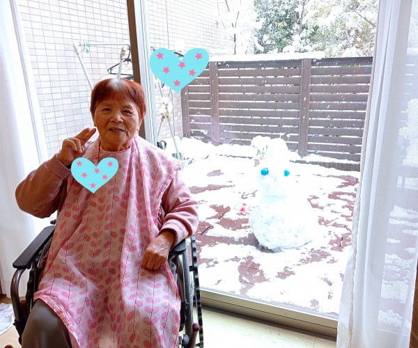 スタッフがテラスで雪だるまを作りました ♥