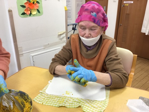 今度は、ゆでたカボチャをつぶしましょうね(^_-)-☆