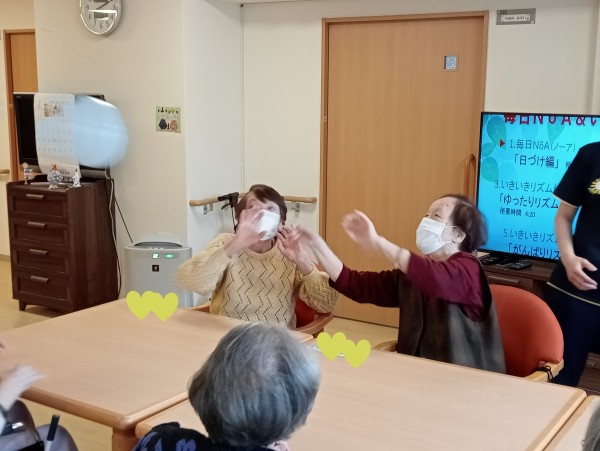 本日は風船バレーを開催!夢中になってくださっている様子をご紹介します!