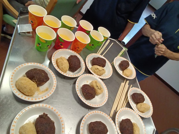普段の誕生日会のスイ-ツは既製品を提供させていただいていますが、今回はスタッフが手作りで「おはぎ」を提供しました