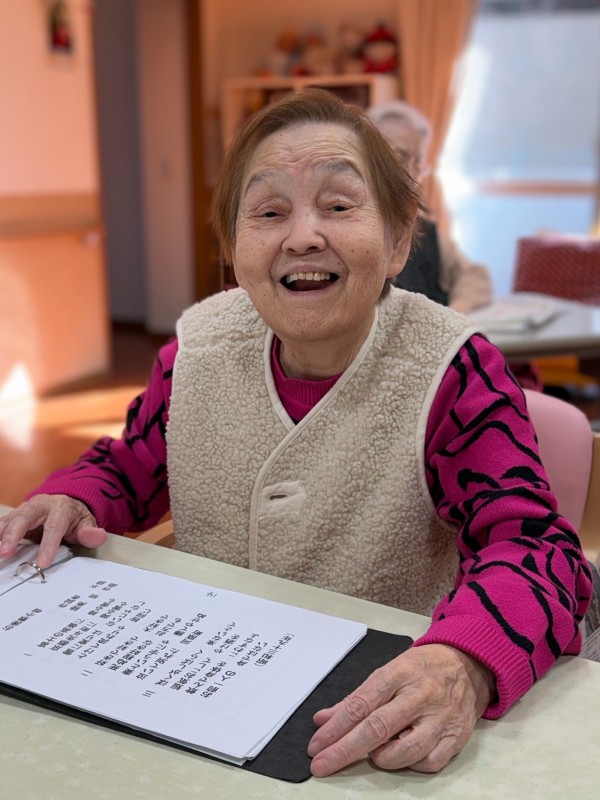 歌を歌う時間は口やのどを自然に動かず嚥下の運動にもなり、結果として肺炎予防にもつながる大切な時間です。