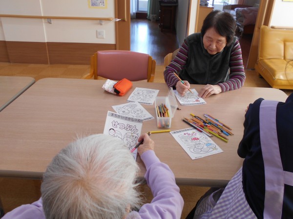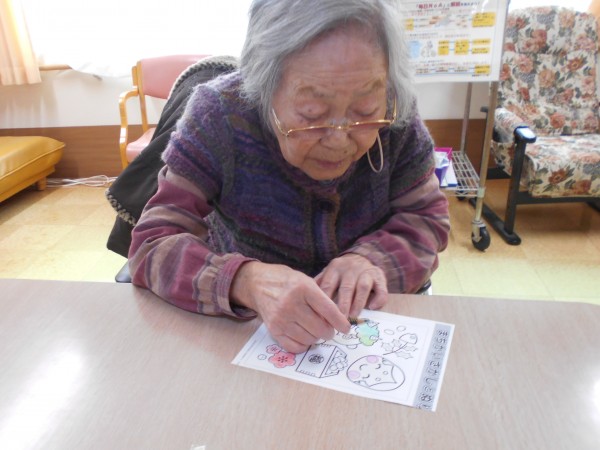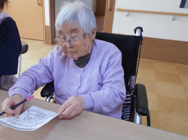 お話しながら塗り絵をしたり、新聞を読みながら先日あった選挙の情報を確認したり、写真を撮るスタッフに笑顔を向けてくださったり、、とそれぞれのんびり過ごされておりました~(*^_^*)