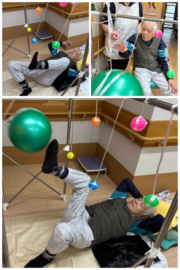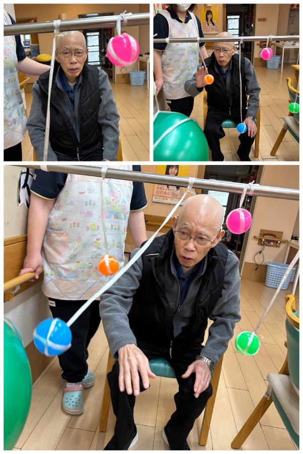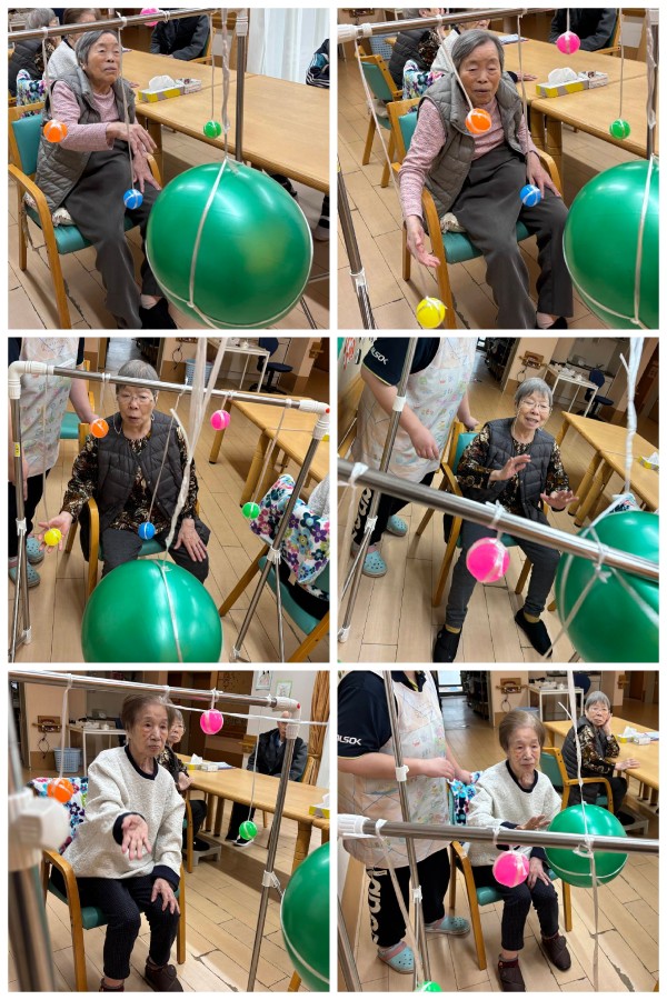 午後のレクリエーションでは手や足を使ってカラーボールに触れながら楽しく体を動かされました( `ー´)ノ✨