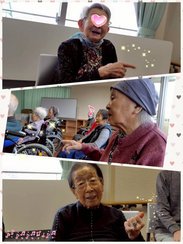 いいですね!皆様さらに大きなお口で気持ち良さそう♪季節感溢れる歌や懐かしの歌を一緒に歌います。