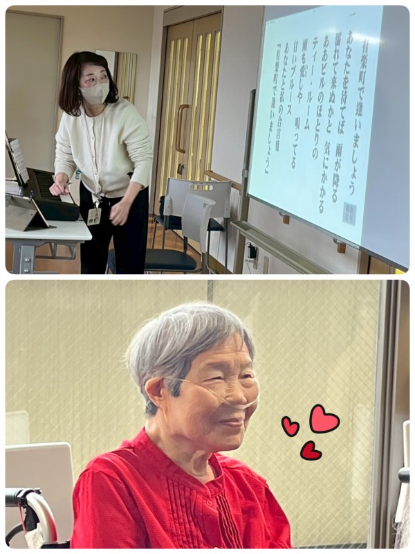 歌を通していろんな思い出が巡ります。思い出話も大歓迎!リクエストも大歓迎!ご入居者様が皆様らしく過ごしてほしいリリムジカの思い。