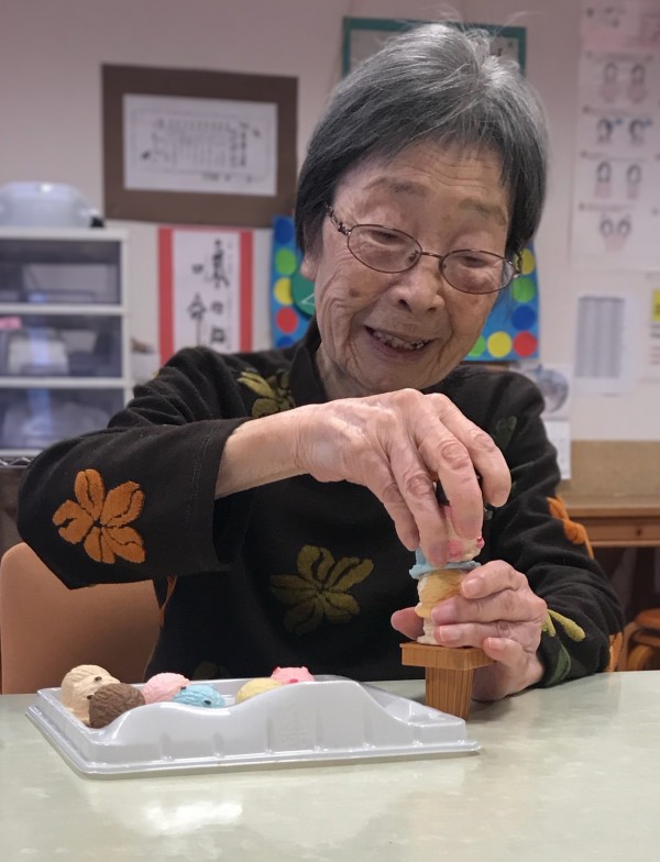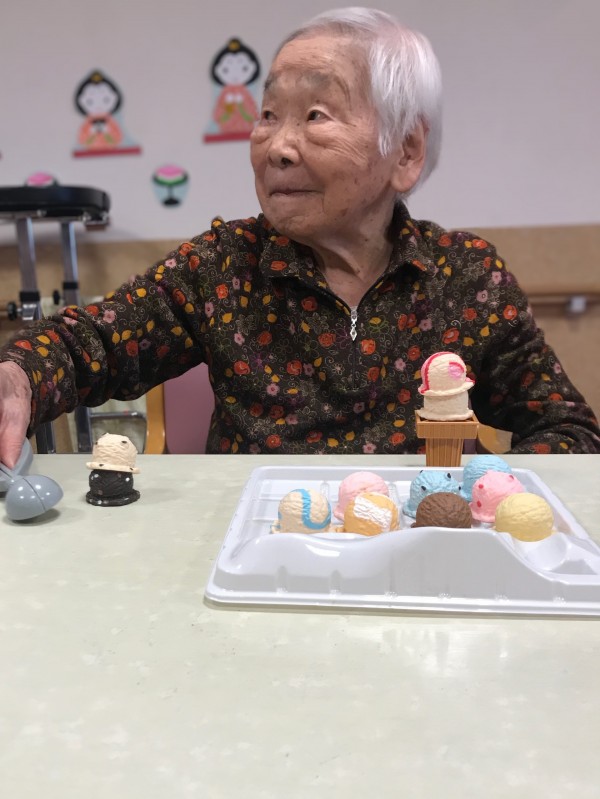 この日のレクリエーションは「アイスクリームタワー」をしていました。