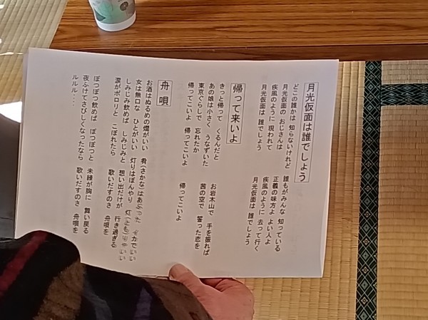 コーヒーを飲んでパンを食べて。小休憩のあとはギターの演奏と歌。 偶然にも「いい湯だな」の曲で終了となりました。