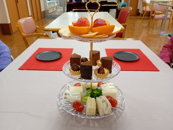 先日2月11日、すこや家・東浦和1階デイサービスにて「アフタヌーンティー」を開催いたしました。今回はその様子をお届けいたします。
