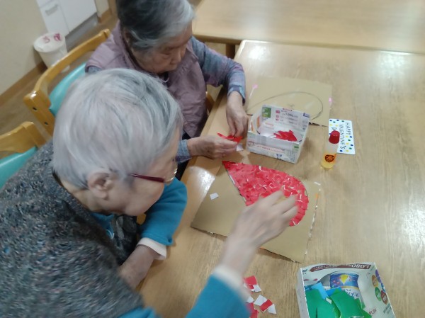 1階では「ハート」♡の貼り絵を作成中です。