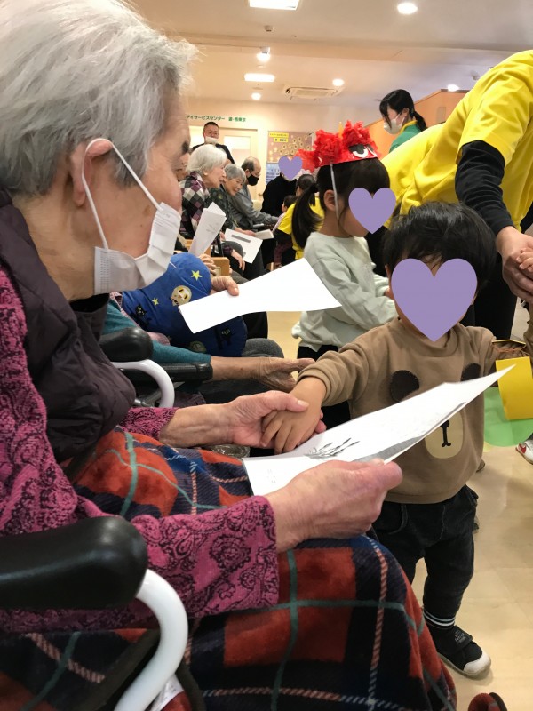 園児が皆様に歌詞を手渡した後に、季節の歌を合唱しました!