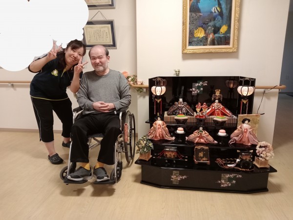 先日はとても暖かい日がありました。春めいた日は、フライングで雛飾りと一緒に記念撮影です!