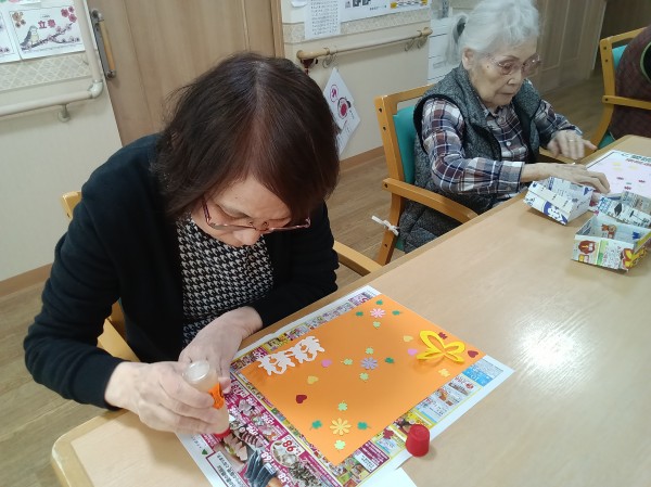 皆様のお好きな色の紙に飾りを貼っていただきました。