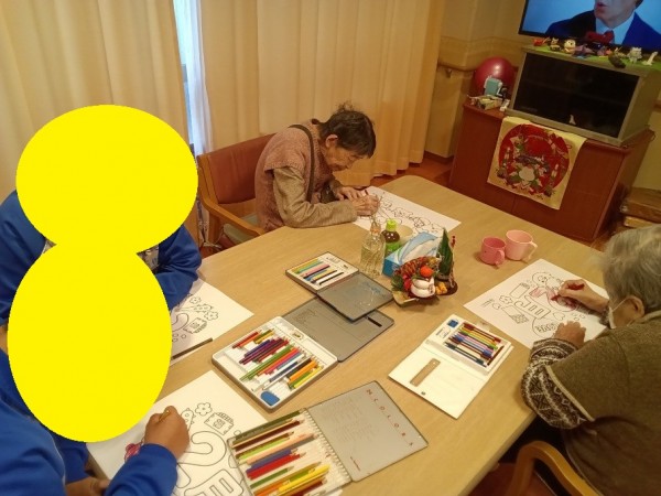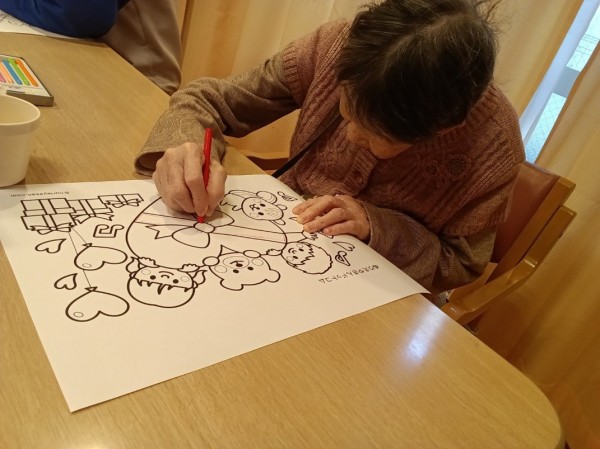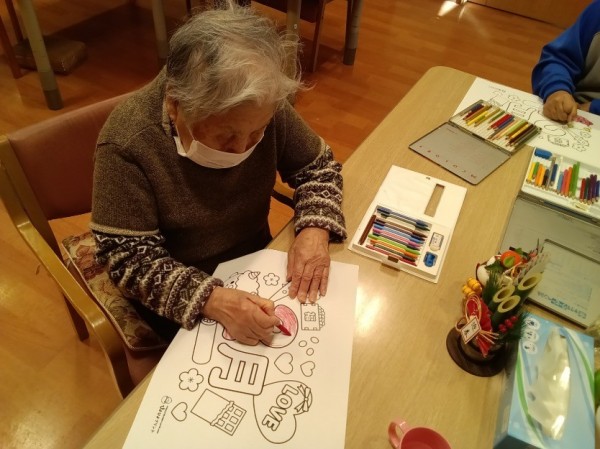 さてさて、夢ワーク3日目の総仕上げはご利用者様と塗り絵を