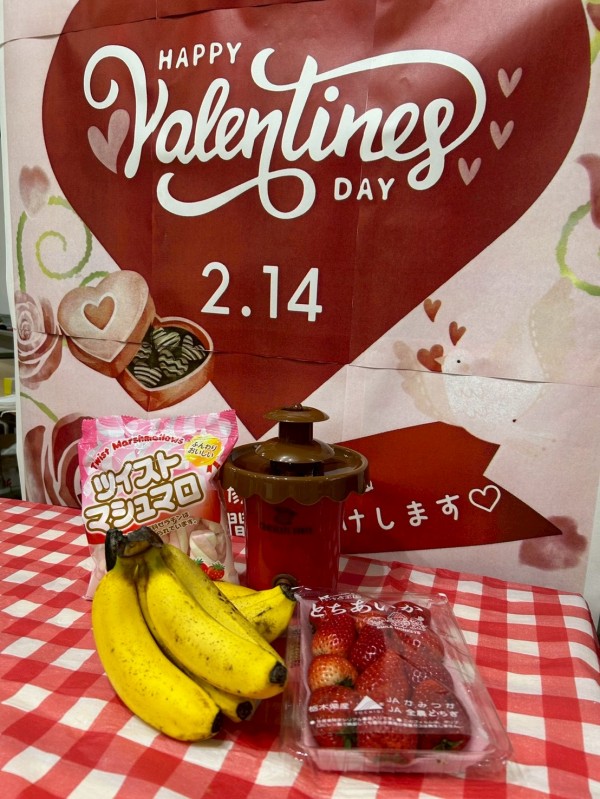 【苺、バナナ、ミニカステラ、マシュマロ、クラッカー、クリームロームサンド】みなさんチョコレートをたっぷりとつけて