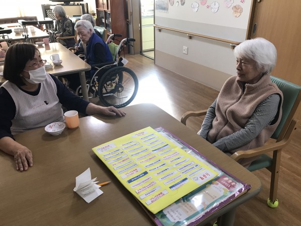 このテーブルでは何やらお話し中~ どうやら、「オリジナルのすごろくを作ろうかな~」と会議中みたい! 「皆が分かる内容がいいよね~」と、とっても楽しそう(*^_^*)