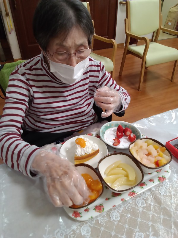 誕生日会第二弾!という事で、利用者様に手伝って頂いてケーキを作りました。