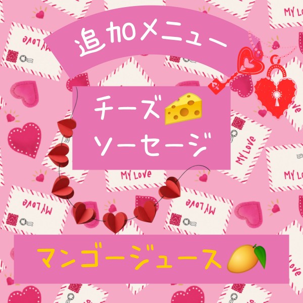 チーズ、ソーセージも良いね!っと話し合い追加メニュー!そして、ドリンクにマンゴージュースも追加致しました^^♡