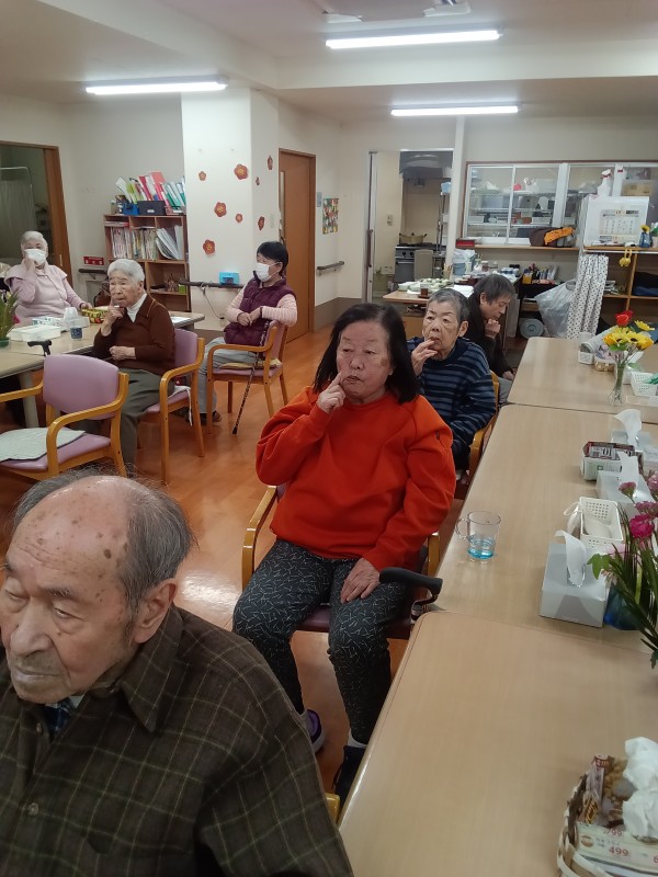 おやつの前に少し時間があったので、手指の体操と歌を歌ってからおやつとなっています。