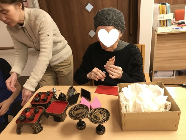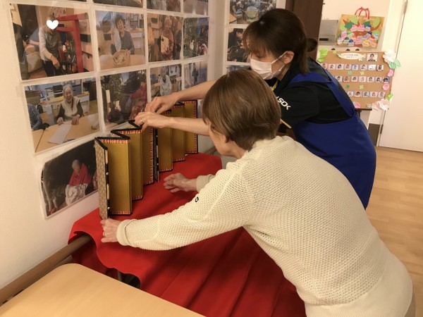 雛段の飾りつけを利用者様と行いましたよ♬ そのご様子をご覧ください!