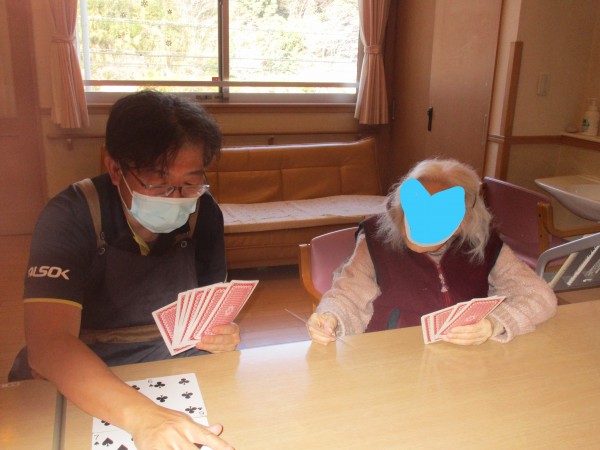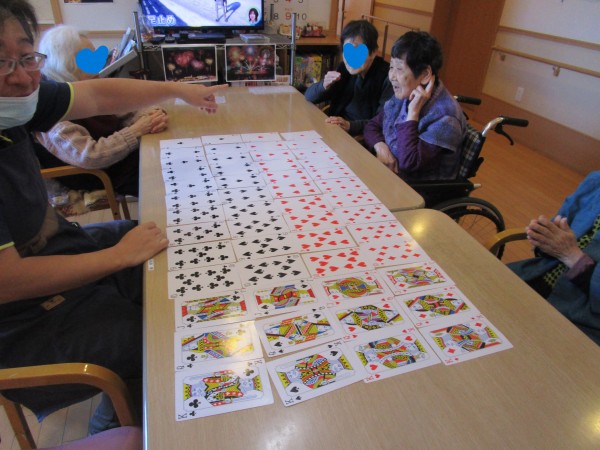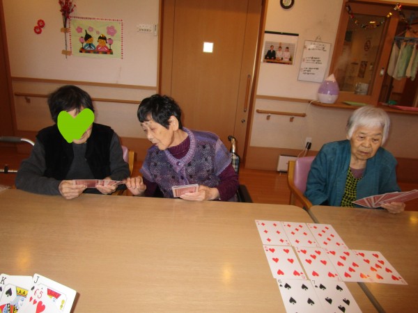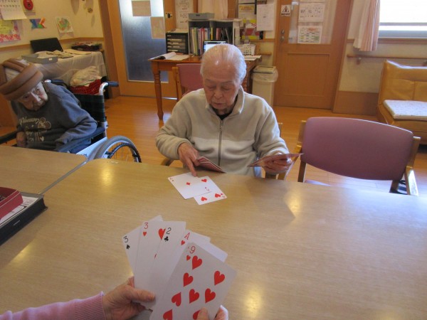 スタッフと一緒にババ抜きやジジ抜き、七ならべなどやっています。