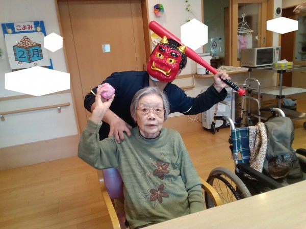 「鬼は外、福は内」と声をだしていました。