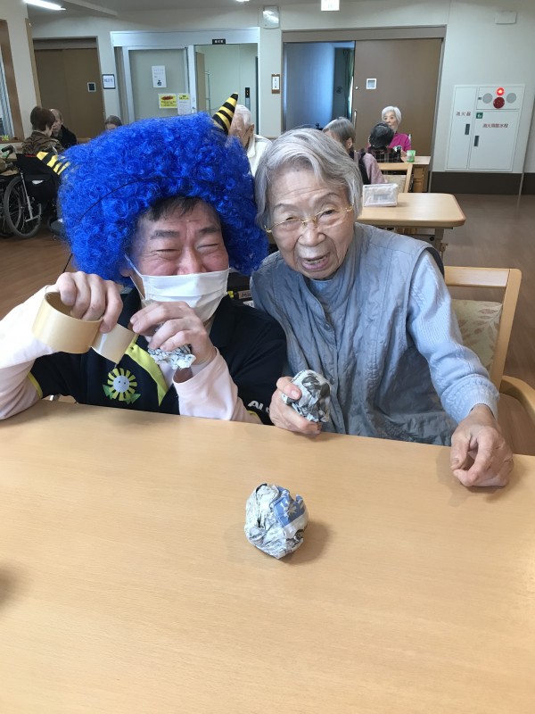 鬼に豆(新聞紙)を投げたり、金棒を奪って追い出しました。