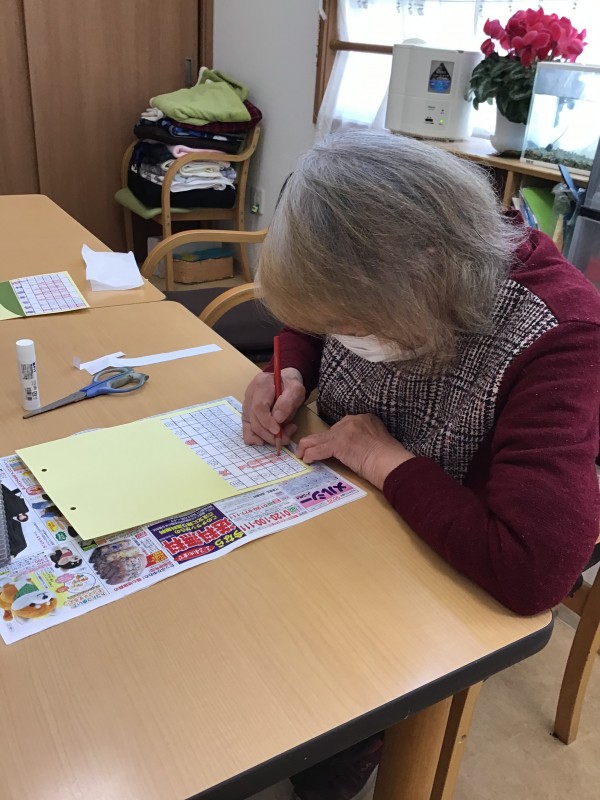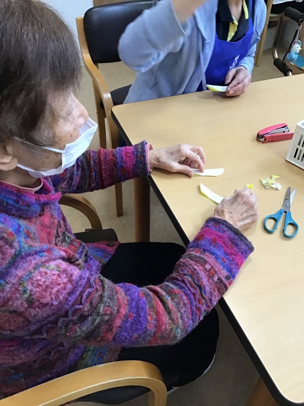 細かい作業に「難しいわね~・・」とおっしゃられる方もいましたが、職員と一緒に行うことで、完成までたどりつくことができました(*^-^*)