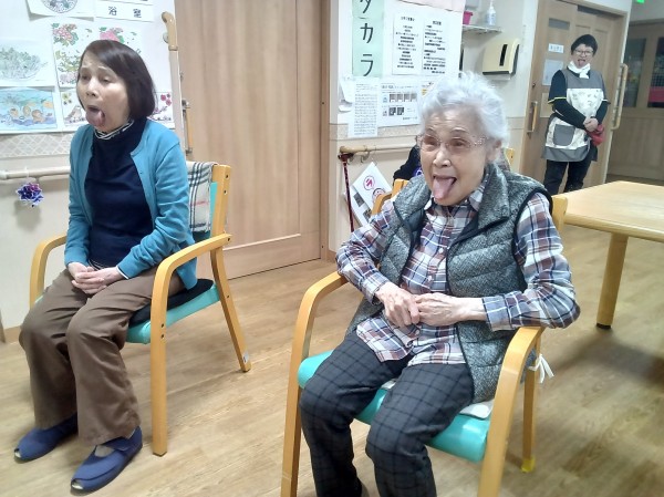 舌を出したり、声も出しながらの運動です。