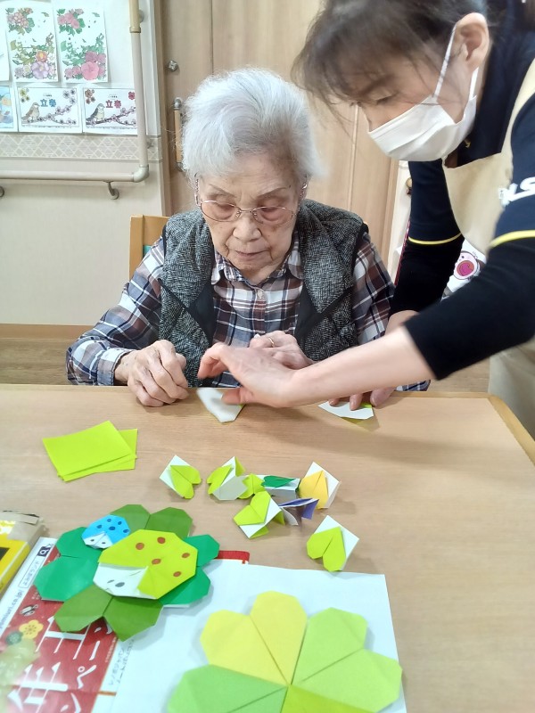 各フロアで春の壁飾り作りが始まっています。