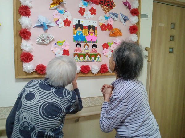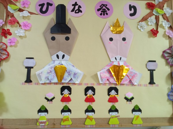 ひな祭りの壁飾りも出来上がっています(^0^)