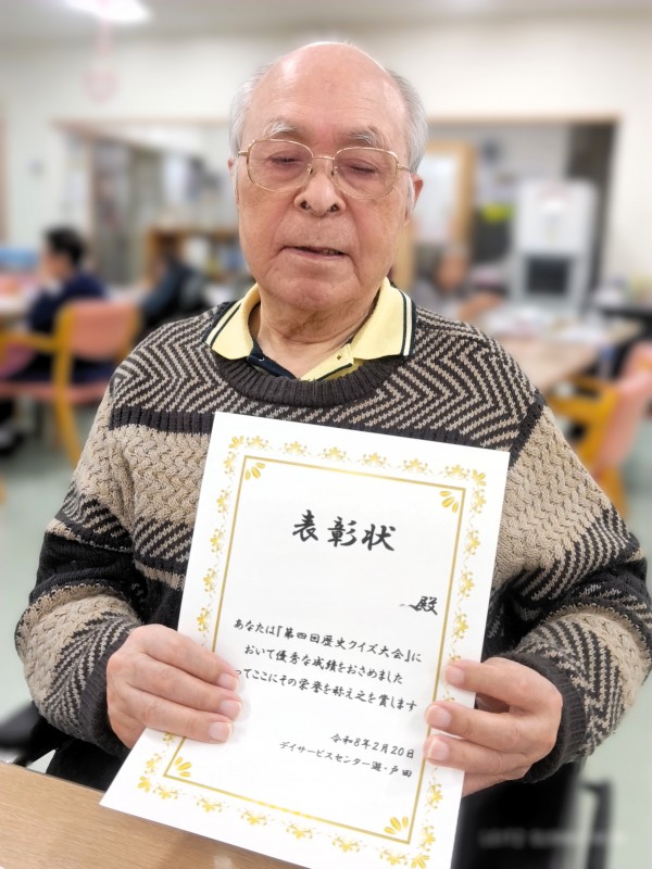 「賞状なんて久しぶりにもらったよ」と笑って受け取ってくださいました。