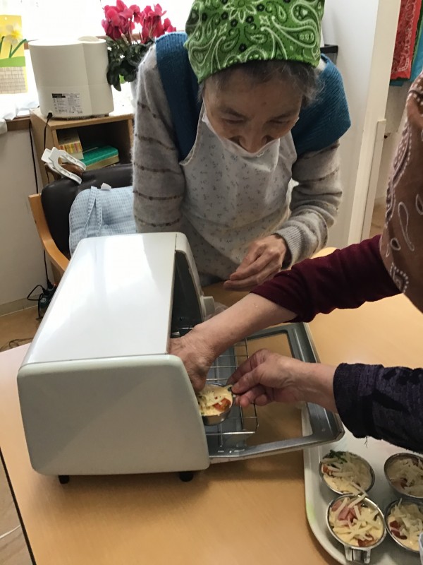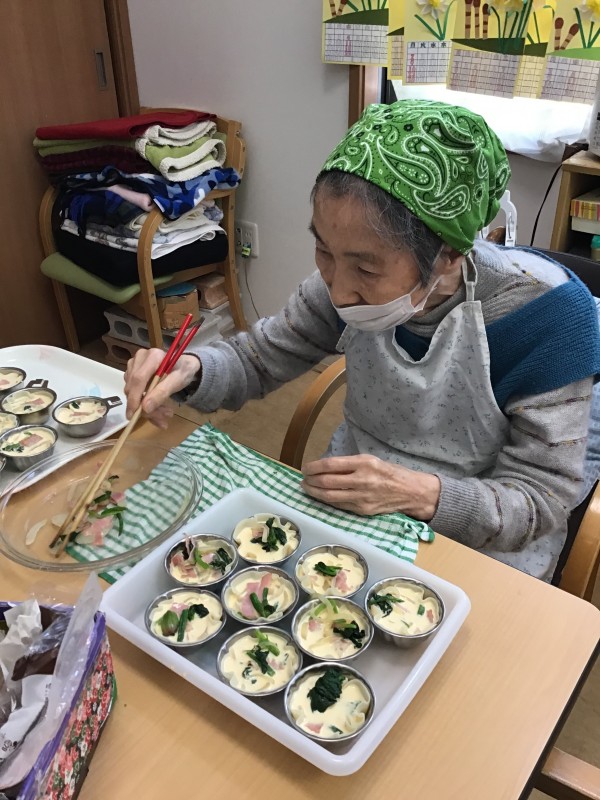 キッシュでは具材を皆様に切っていただき、オーブンで焼きました!