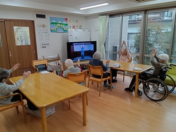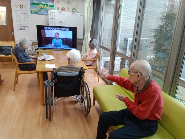 今日は1階でリモート体操(口腔ヨガ)が行われました。 そのご様子をお知らせいたします!!