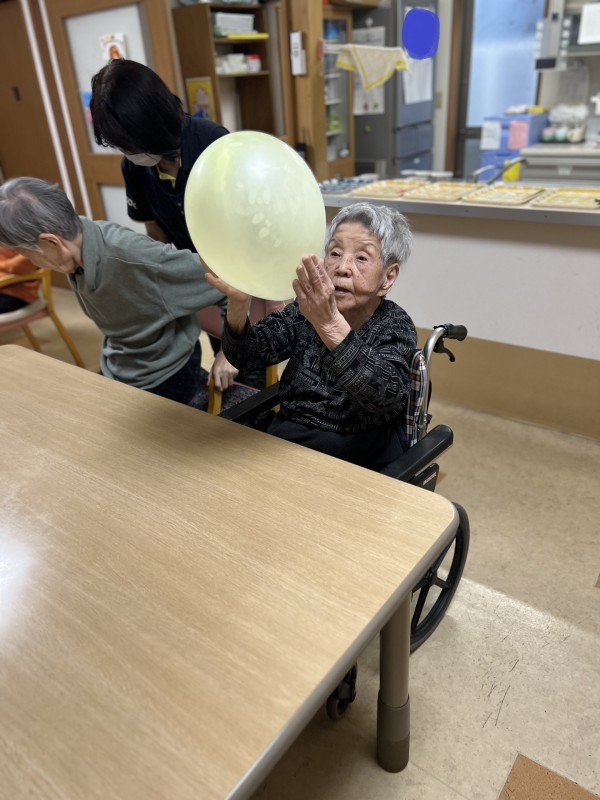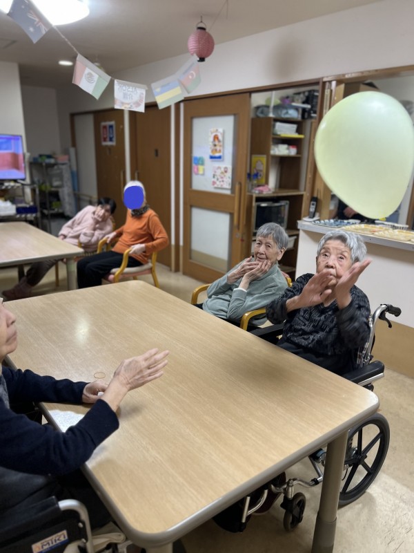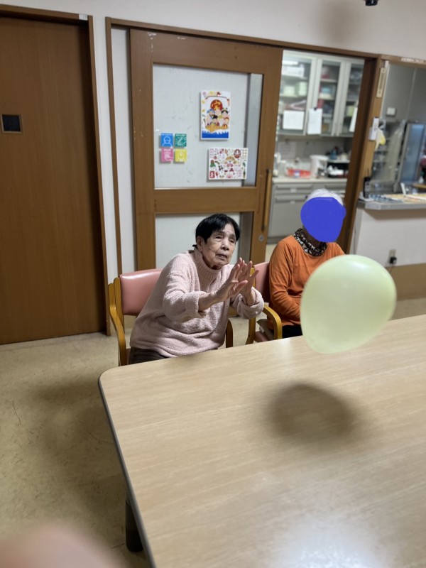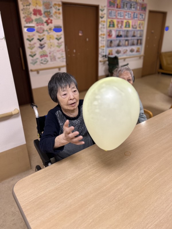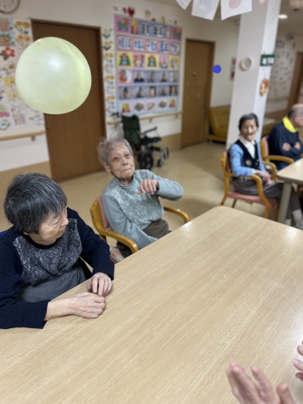 今回は1階の皆さんによる風船バレーのレクリエーションのご様子をご覧ください。