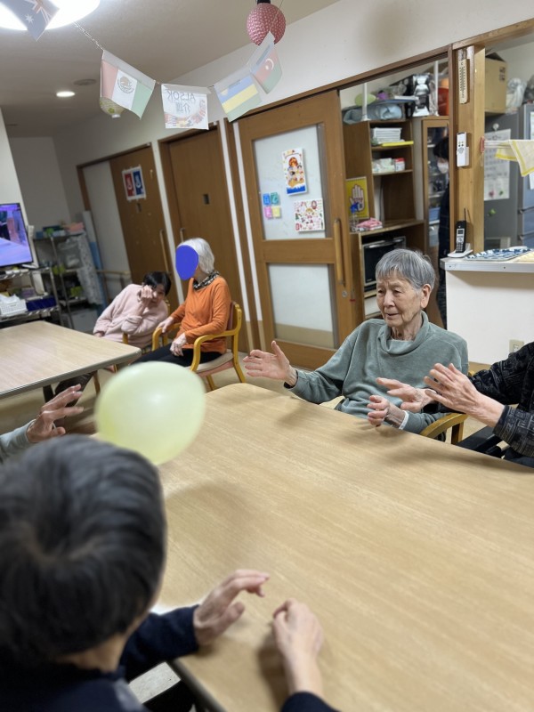 1F・風船バレー・レク【グループホームみんなの家・新川崎介護ブログ】