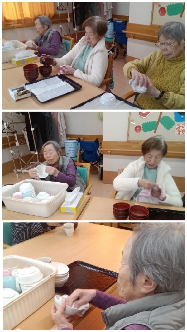 お食事後の食器を一つひとつ丁寧拭いて下さるお母様方(´ω`)布巾を手に手慣れた手つきでピカピカに仕上げて下さりました♬