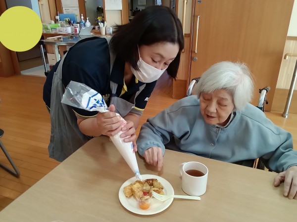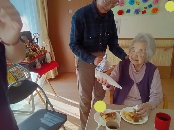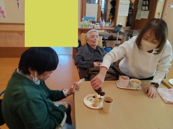 先日、利用者様とスタッフで「特製ホットケーキパフェ」作りに挑戦しました(*^^)v