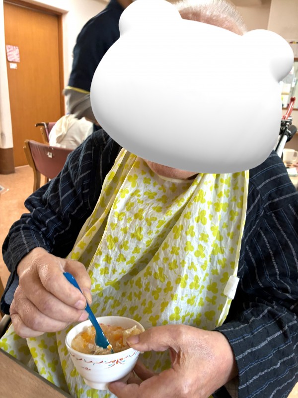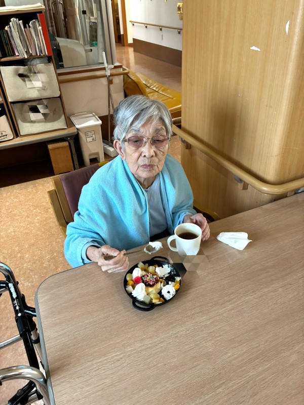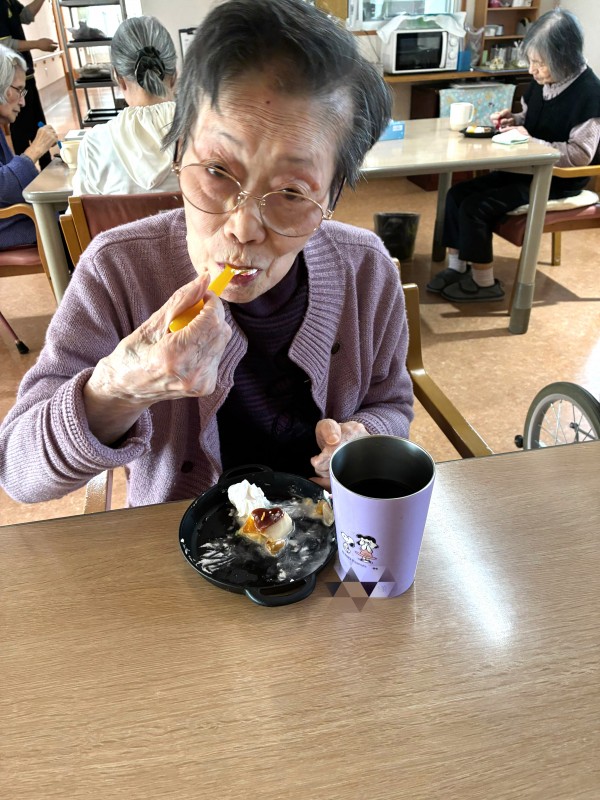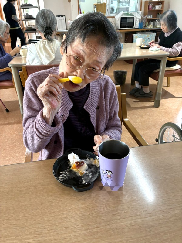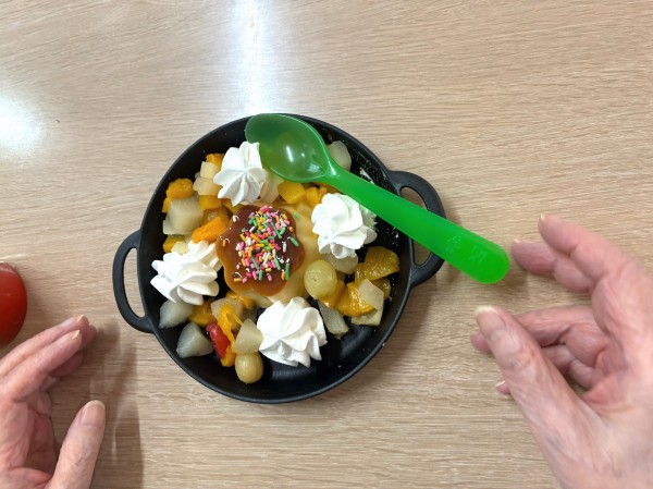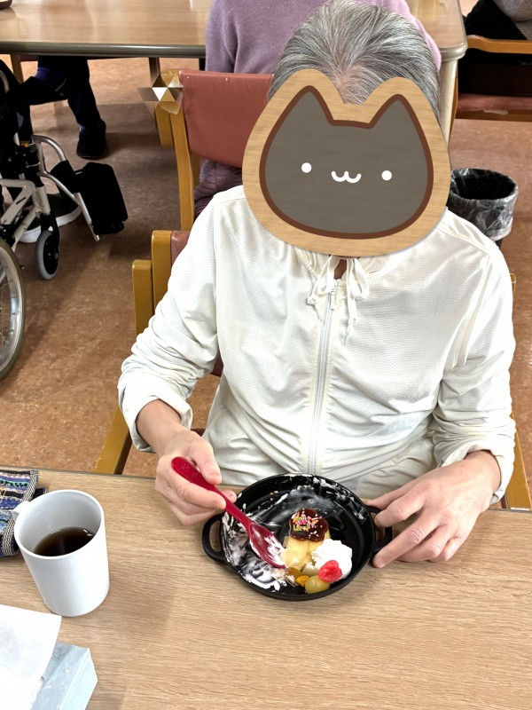 普段主に柔らかいものを召し上がっていただいているU様に合わせて、本日はプリン アラモードをご用意させていただきました!!