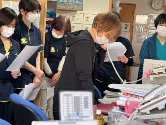 「入居者様は職員が誘導中です。現在、確認を進めています。」