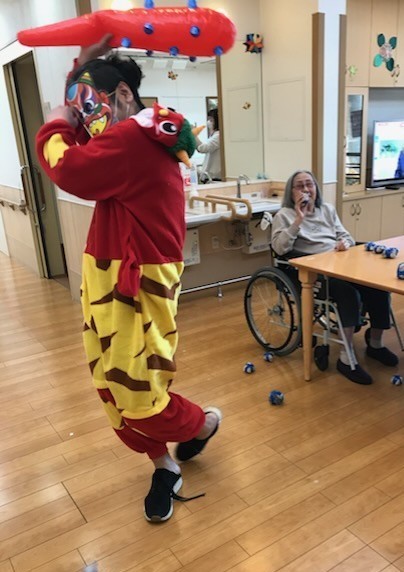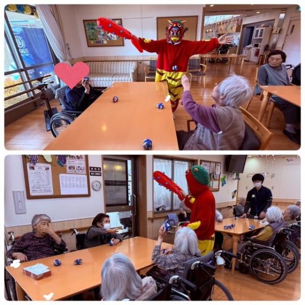 皆様鬼が登場すると、「鬼は~外」とまめに見立てた玉を頑張って投げていました(≧▽≦)