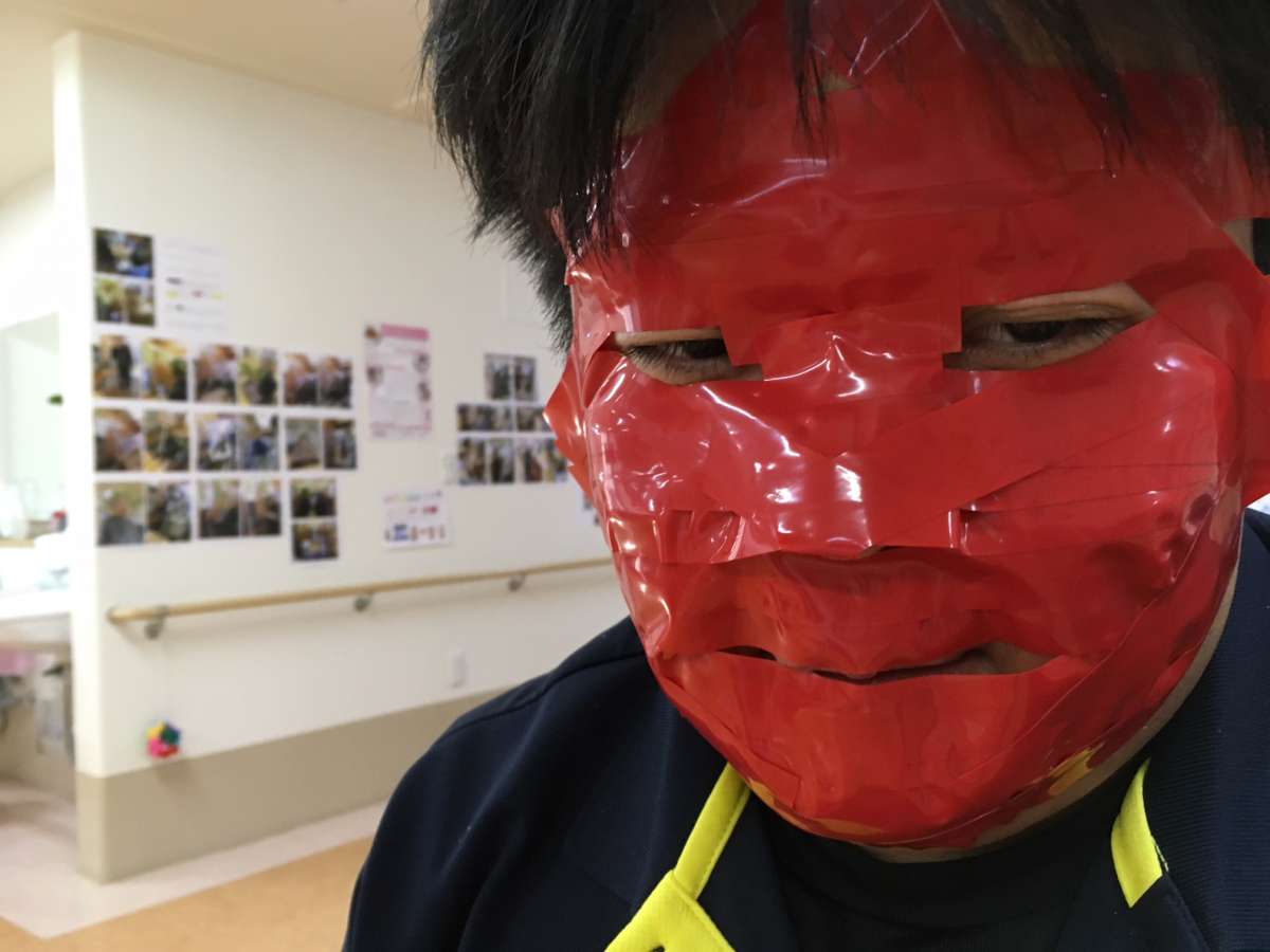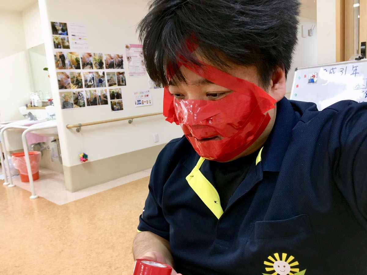 ①まず『剥がす時に絶対に肌が痛いであろうテープ』を顔に貼る。