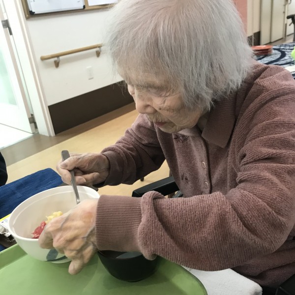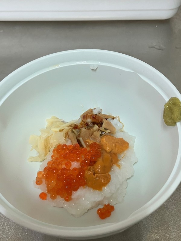 飲み込みの状態が不安な方のためにお粥を使った海鮮丼もご用意していただけました(^^)/