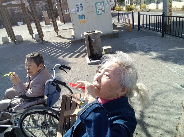 ホーム近くの公園に、みんなで出かけ、シャボン玉なんてやってみたちゃったりして:;(∩´﹏`∩);: