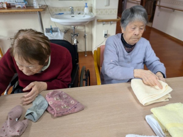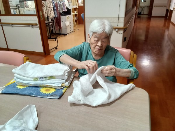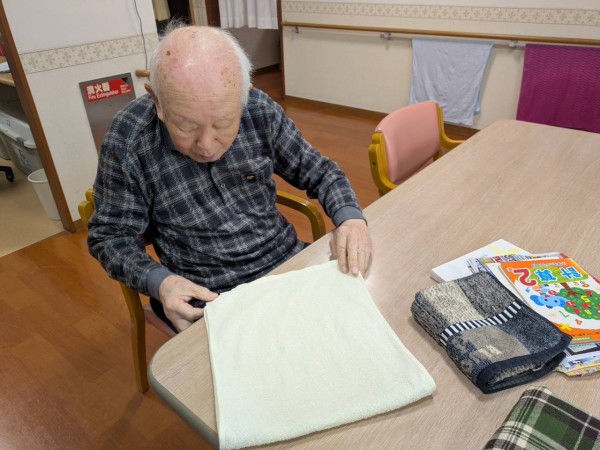 タオルや衣類を丁寧に畳む動作は、指先を使い、集中力も必要とする大切な日常動作です。