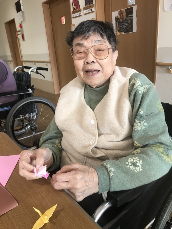 グループホームみんなの家・川崎野川南台です! 今日は、みんなで折り紙をしました~ 鶴を作ったり、ミニミニ帽子を作ったり、それぞれ遊びました(*^_^*)