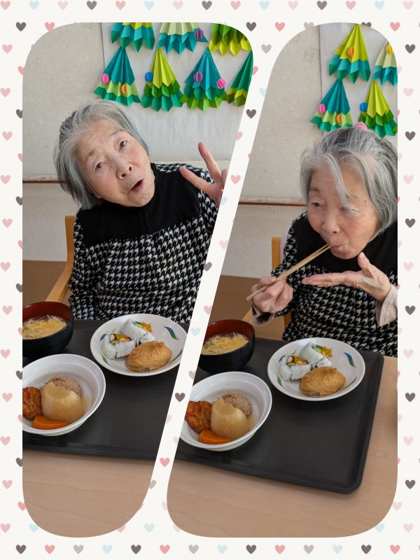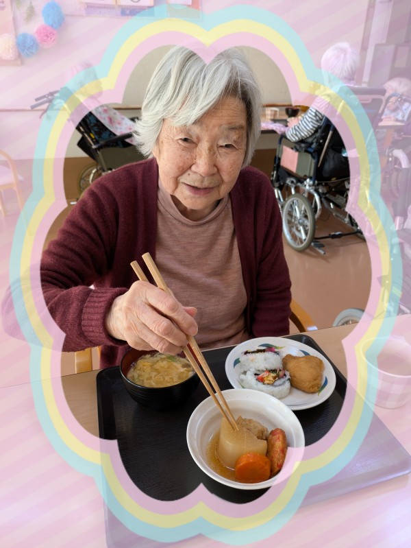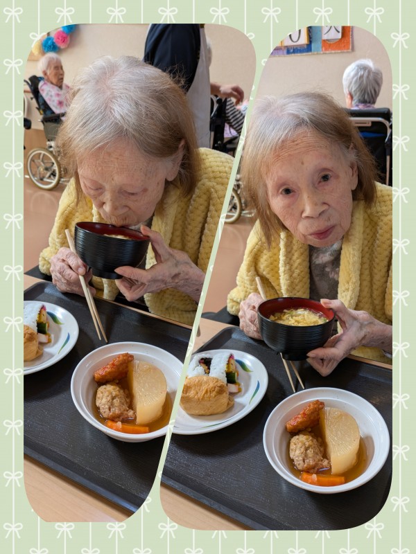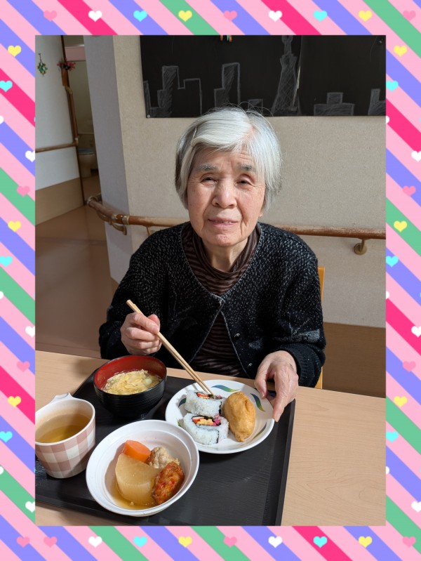 のり巻き、お稲荷さん、大根と鳥団子の煮物と、かきたま汁~