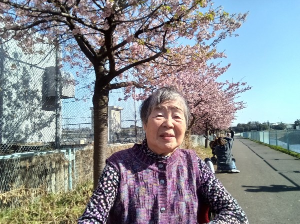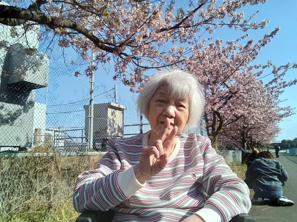 満開の桜を前に、表情もパッと華やいでいらしゃいました。