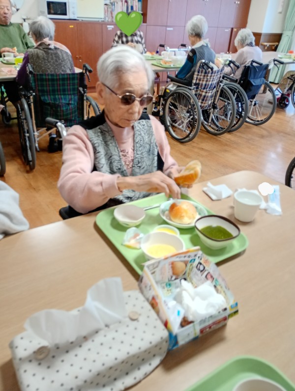 すこや家では、週に一度木曜日の朝食はパンの日と決まっております。利用者の方でパンが大好きな方がいて毎週木曜日をとっても楽しみにしているのです♪♪