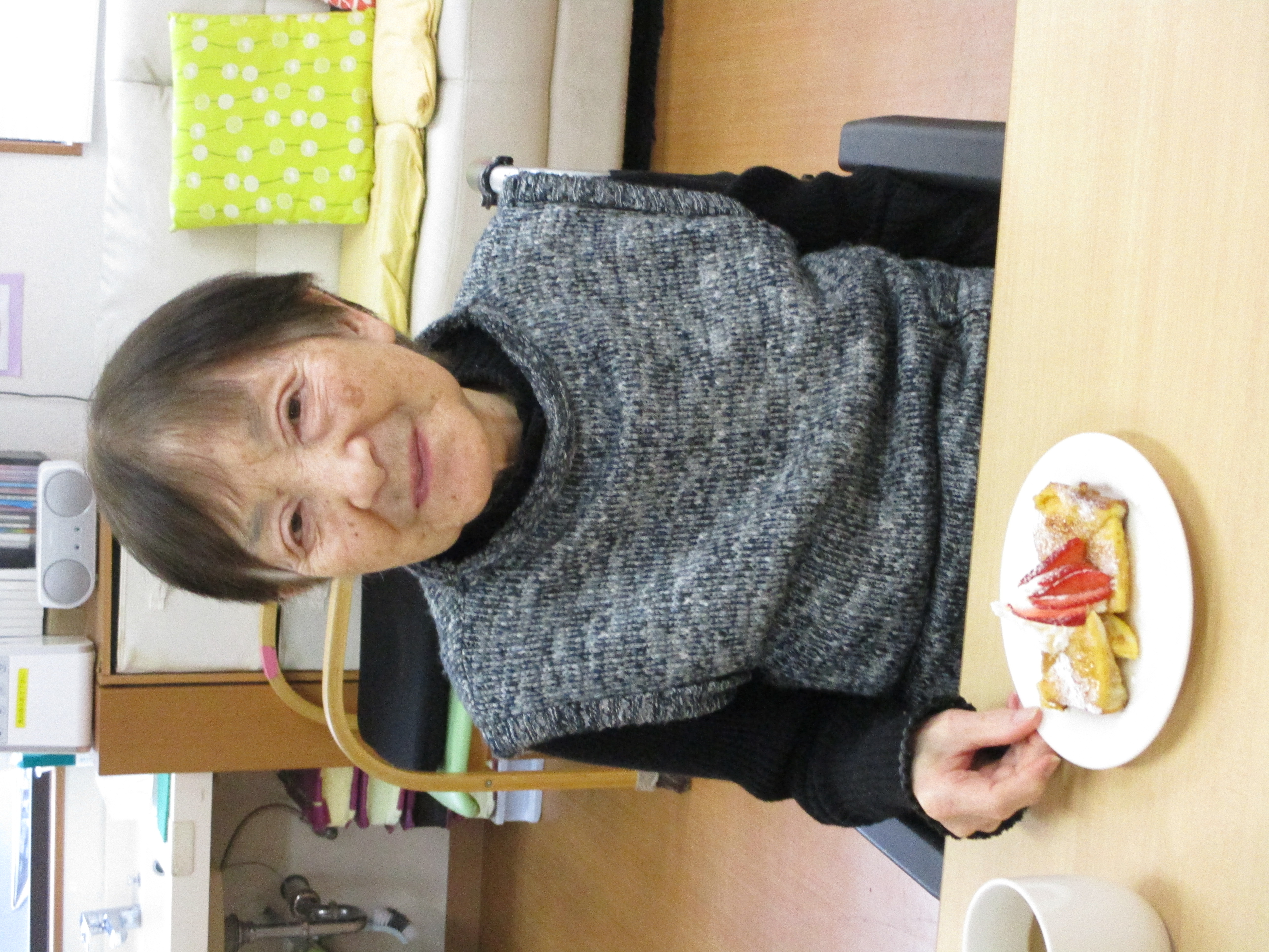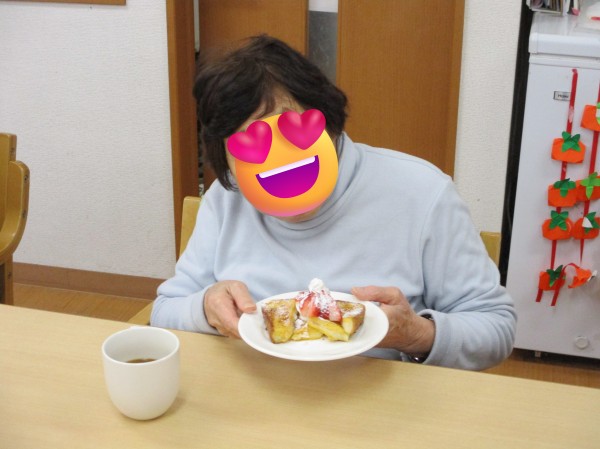 今回はフレンチトースト、イチゴ添え♬