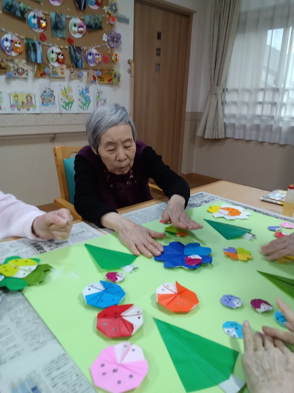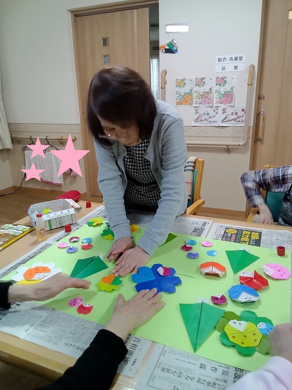 春らしい壁飾りが出来上がりました (^0^)